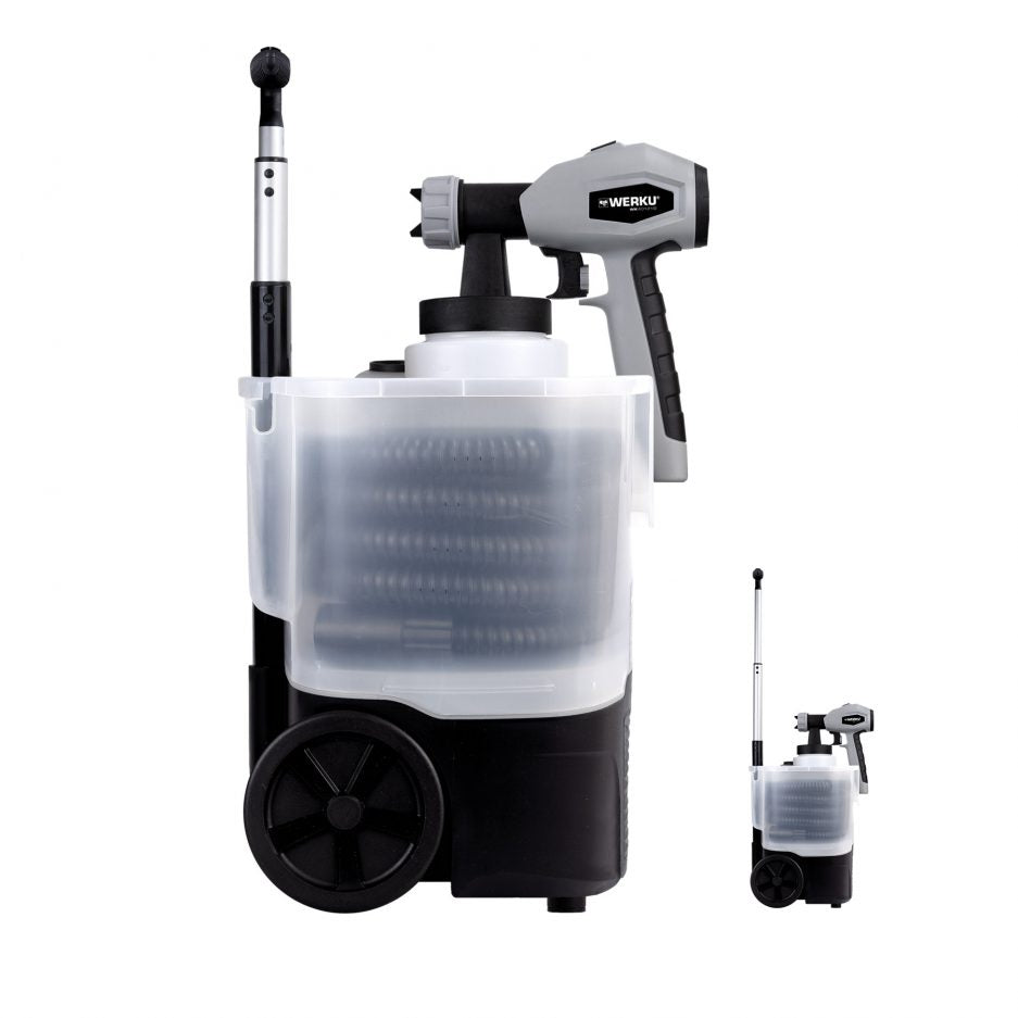 Turbinen-Trolley-Saug-Lackierpistole Hvlp Werku WK401180 Modell WK401180 Inklusive Viskosimeter Der Kopf ist schnell lösbar und austauschbar Optimale Lüfter-, Richtungs- und Flüssigkeitskontrolle....